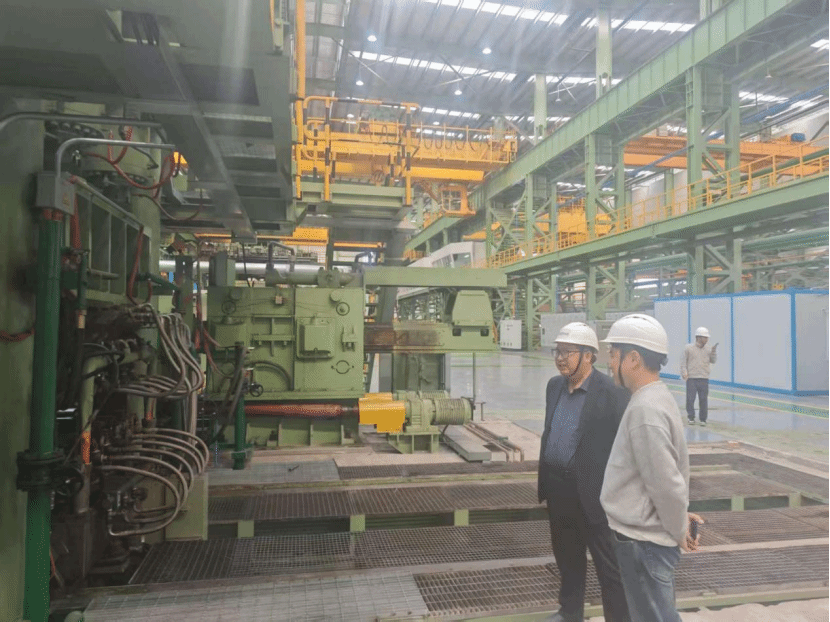 庄伟副总经理带领白振华常务副院长一行参观了生产线。钱奕好副总经理介绍浙江富钢集团在特种合金生产领域的产业布局、技术积累及市场发展情况,重点阐述了企业在冶炼工艺优化、轧制精度提升等方面的技术需求与发展痛点,同时介绍了集团在产学研合作方面的经验及对产业平台建设的规划思路。