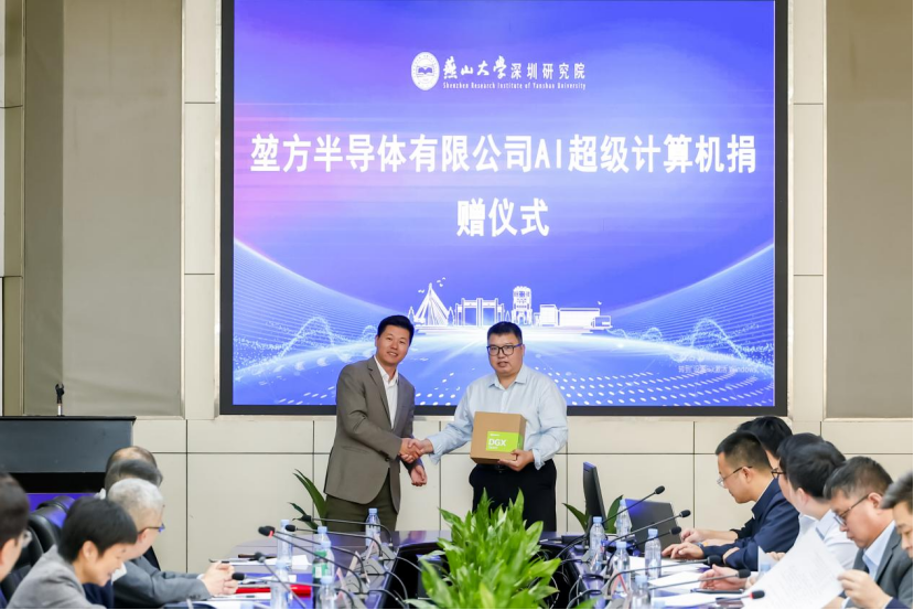 堃方半导体有限公司向研究院慷慨捐赠AI超级计算机,为人工智能研发、大数据计算提供坚实硬件支撑。燕山大学深圳研究院常务副院长白振华代表受赠方致谢,他表示将充分发挥设备效能,加速科研创新进程。