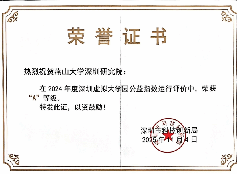 深圳虚拟大学园联席会议已连续举办26届,成为推动产学研协同创新的重要平台。会上举行了2024年度公益指数运行评价A级机构颁奖仪式,燕山大学深圳研究院获奖。未来,燕山大学深圳研究院将以此为依托,为大湾区高质量发展注入更多“燕大力量”。